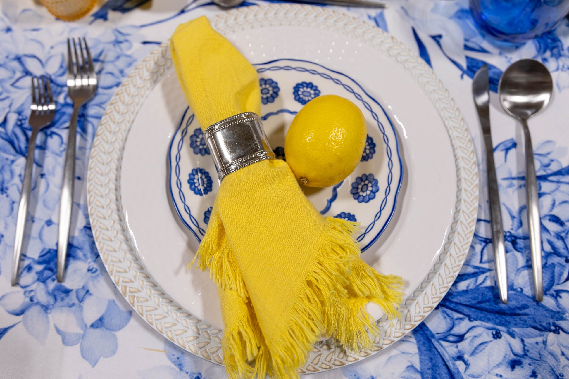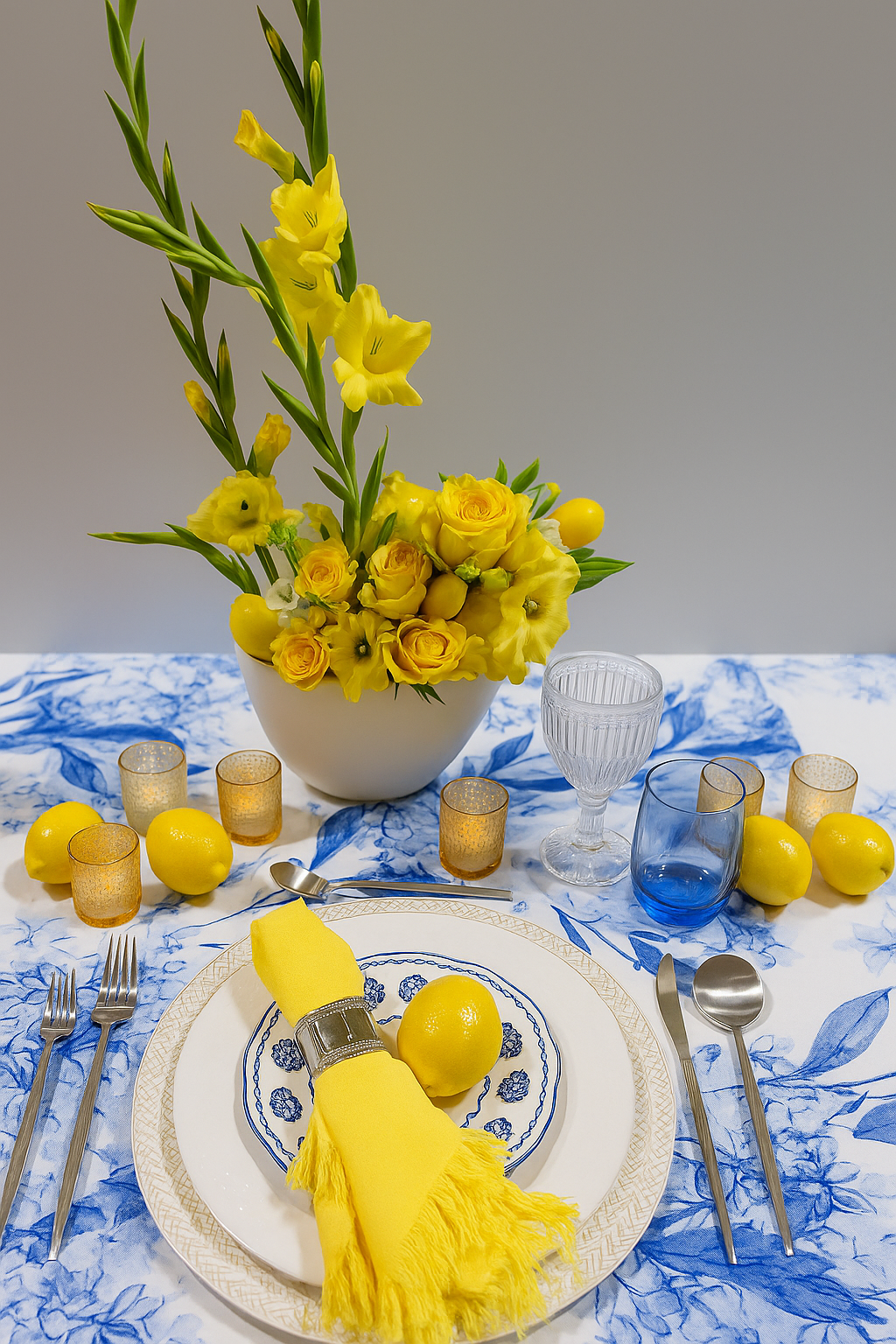 Bright, joyful, and effortlessly chic, our Amalfi Glow Soirée brings the charm of a sunny coastal escape to your table. Vibrant yellow florals and fresh citrus pair beautifully with classic blue-and-white accents, creating a look that feels both lively and elegant. Soft amber candlelight and textured glassware add warmth and dimension, making every setting feel inviting. Perfect for brunches, birthdays, summer dinners, or any celebration that calls for a burst of sunshine. Fresh, happy, and beautifully styled—this tablescape instantly lifts the mood.