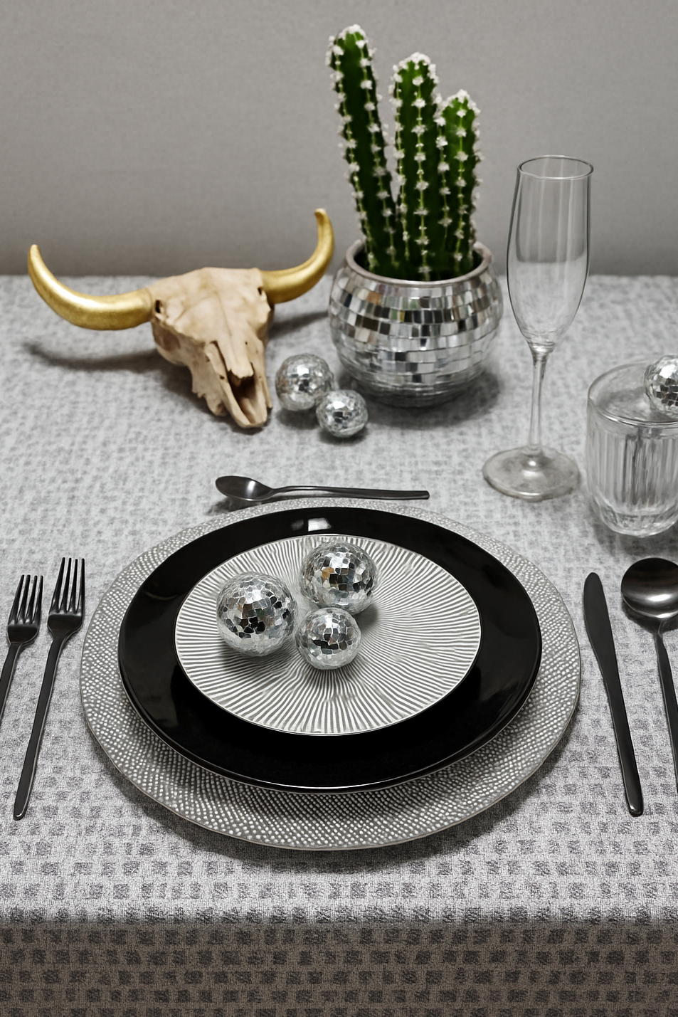 Turn any celebration into a shimmering escape with our Desert Disco Soirée. This curated tablescape blends modern desert elements—think sculptural cacti and warm textures—with the glam of mirrored disco balls for a look that’s both bold and effortlessly cool. Perfect for New Year’s Eve, birthdays, bachelorette parties, or any night that calls for sparkle. Every detail is styled to feel elevated, fun, and photo-ready. Set the scene, turn up the shine, and enjoy the party.