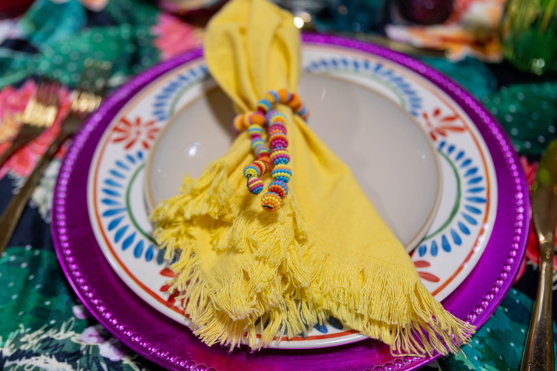 Bring bold color and effortless fun to your table with our Fiesta Soirée. This curated tablescape for four blends vibrant hues, layered textures, and festive details for a celebration-ready look in minutes. Each piece is thoughtfully selected to feel elevated while still capturing the joy of a true fiesta. Perfect for Cinco de Mayo, taco nights, summer gatherings, or any occasion that calls for bright, happy energy. Host beautifully—without the stress.